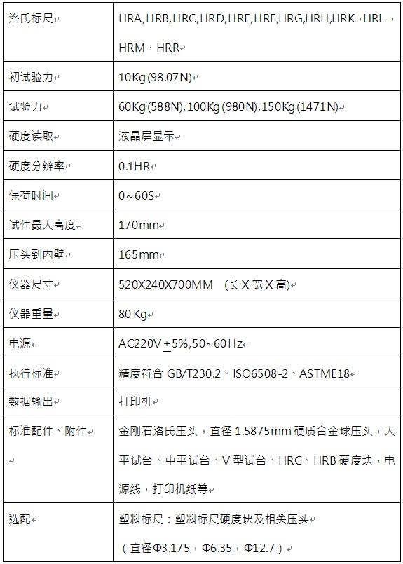 數(shù)顯洛氏硬度計(jì)技術(shù)參數(shù):