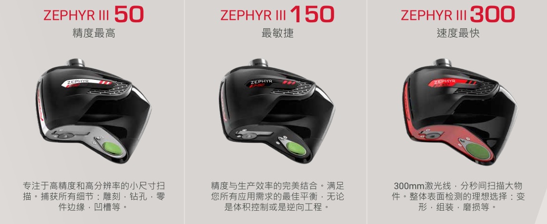 Zephyr III 高端掃描儀,帶 300mm、150mm 或 50mm 激光線,能在數(shù)秒間輕松掃描復(fù)雜物體。藍(lán)色激光線可直接掃描黑色或光澤表面。作為通用產(chǎn)品,它們滿足CMM所有測量需求,并且可以在測量臂、機(jī)器人、機(jī)床和光學(xué)跟蹤儀上靈活切換。