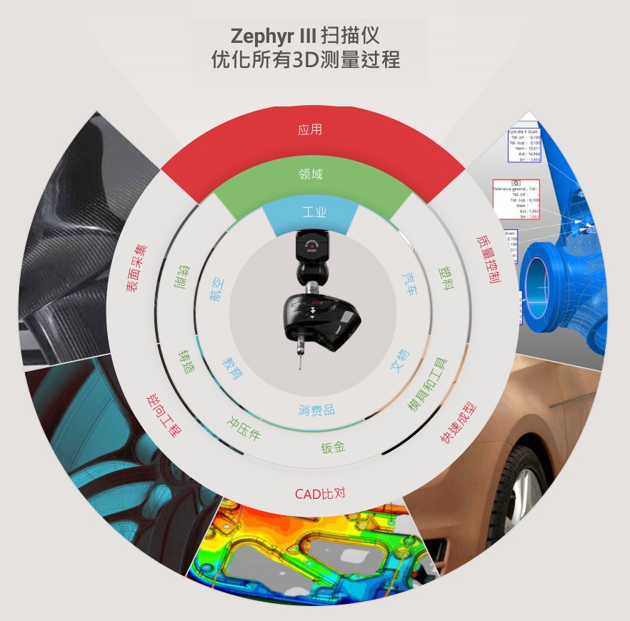 Zephyr III掃描儀可用于多種機(jī)器:三坐標(biāo)、測量臂、機(jī)器人,數(shù)控機(jī)床。