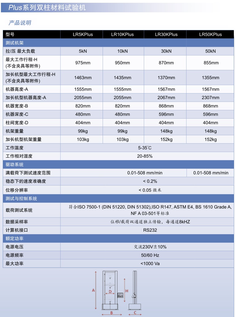 此外,LR Plus 系列有兩種落地式機(jī)型:LR100K Plus和 LR150K Plus 能力高達(dá) 150 kN(33722 lbf)。