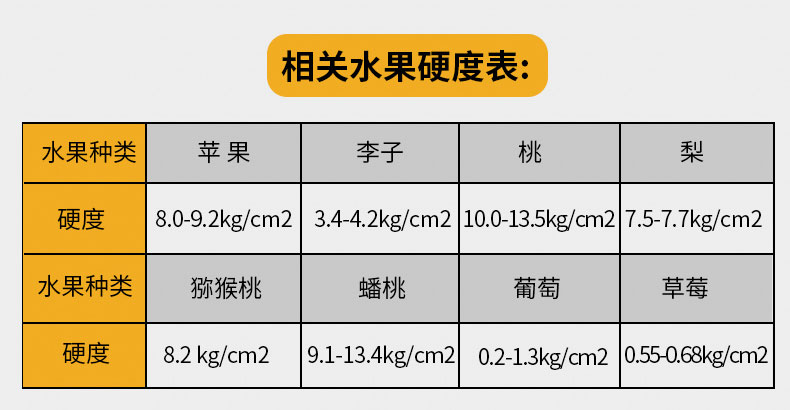 水果硬度計適用于果樹科研部門,果樹農場,果品公司,大專院校等單位使用。