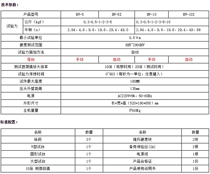 ·小負荷維氏硬度計分為2種系列,一種5公斤的HV-5系列;一種10公斤的HV-10系列。