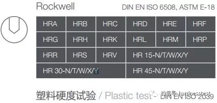 普通洛氏硬度計的標尺為:HRA、HRB、HRC等共15種標尺;表面洛氏硬度計的標尺為:HR15N、HR30、HR45N、HR15T等共15種標尺。如下圖: