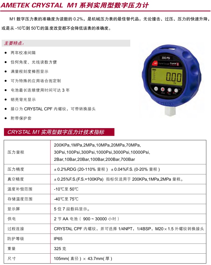 阿美特克 Ametek m1實用型數字壓力計簡介: