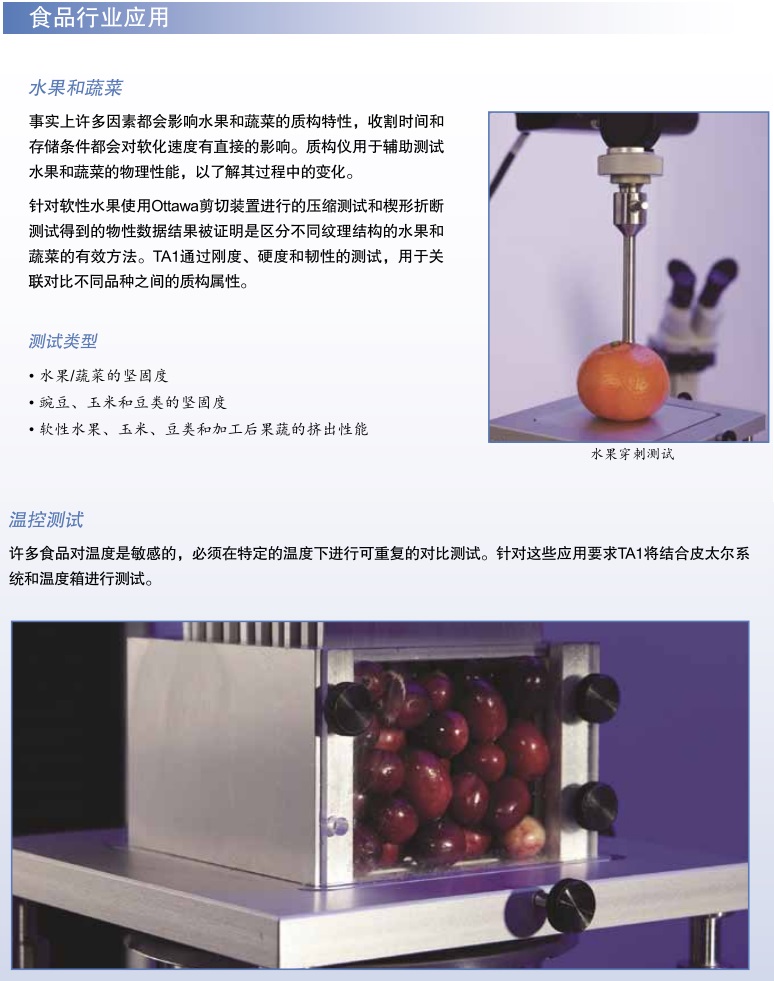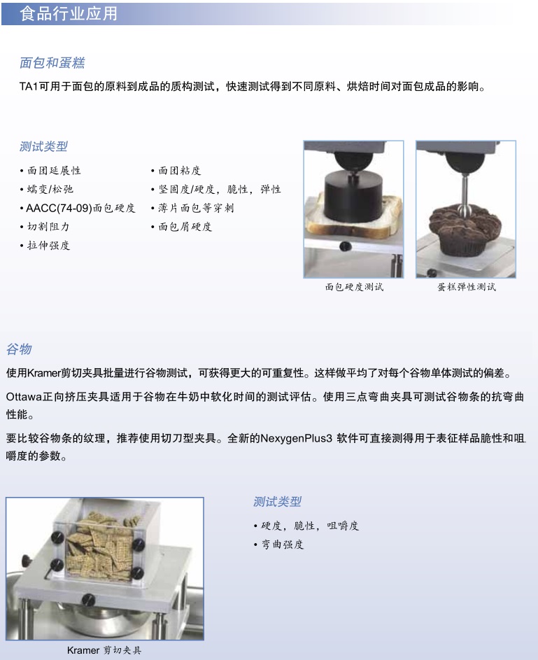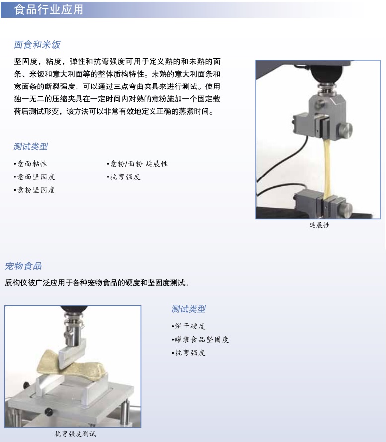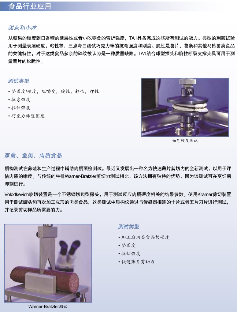 硬度(Hardness)、彈性(Springiness)、酥脆性(Fracture)、咀嚼度(Chewiness)、堅(jiān)實(shí)度(Firmness)、韌性(Toughness)、纖維強(qiáng)度(Fibrousness) 、粘著性(Gumminess)、膠著性(Stickiness/Tackiness)、